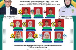 Selamat dan Sukses Atas di Terimanya Peserta didik Kelas XII MAN 1 Pagar Alam Pada Perguruan Tinggi (Negeri) PTN Jalur Seleksi Nasional Berdasarkan Prestasi (SNBP) Tahun 2025