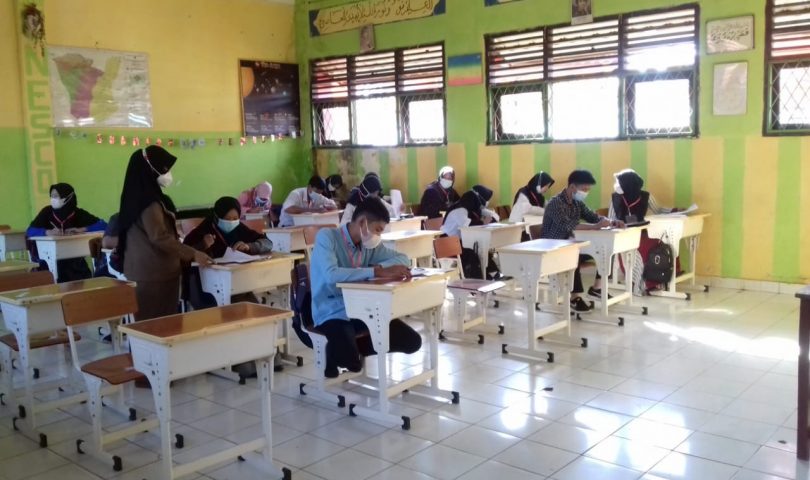 Dalam sambutan nya Waka Kurikulum dan Evaluasi Reni Indarti, S.Pd, M.Si menjelaskan mata pelajaran yang mulai di uji kan hari ini, pelajaran Bahasa Indonesia, Penjaskes, Al-Qur’an Hadist yang di ikuti tiap siswa di ruangan masing-masing sesuai nomor yang telah di tempel di ruangan kelas. setiap ruangan kelas di isi kurang lebih 30 siswa yang di awasi oleh satu orang pengawas.