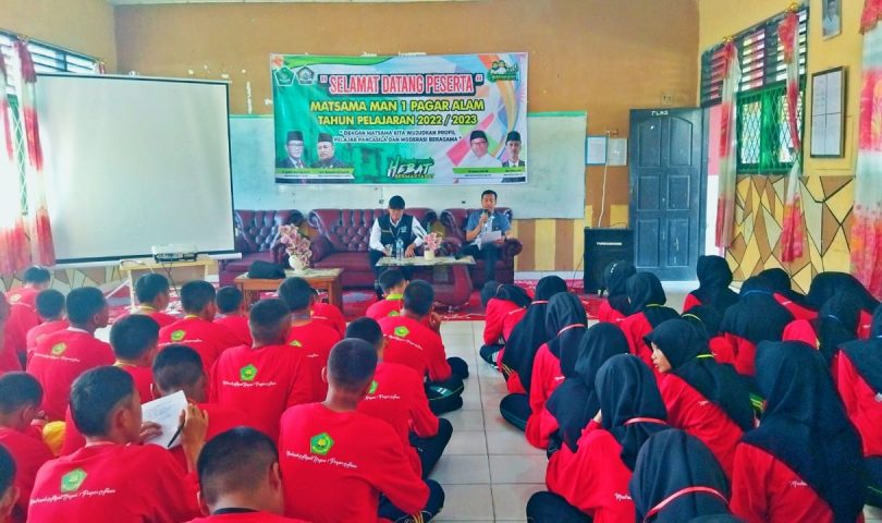 Hari ketiga Matsama MAN 1 Pagar Alam, Anggota Badan Narkotika Nasional (BNN) Iman Fernando Kota Pagar Alam bertempat di ruang kelas madrasah, Selasa (19/07)