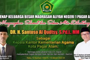 Pagar Alam, Humas. Kepala Madrasah Aliyah Negeri 1 Pagar Alam Agus Sutiono beserta guru Pegawai berikan ucapan selamat atas pelantikan Kepala Kantor Kementerian Agama Kota Pagar…