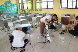 Pagar Alam, Humas Waka Sarana Prasarana Eduar melakukan perbaikan kursi dan meja di ruang kelas X, XI dan XII yang dibantu Ketua OSIM MAN 1 Pagar…