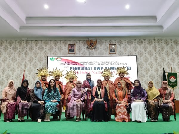 DWP Kemenag Pagar Alam Fhoto bersama dengan ibu Mentri Agama RI dan ibu kanwil Sumsel.Dalam acara pembinaan Penasehat DWP kementerian agama RI