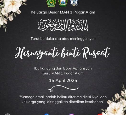 Keluarga Besar MAN 1 Pagar Alam Turut Berduka Cita Atas meninggalnya Ibu Kandung Boby Apriansyah Hendra 15/04/2025 46 Views 9 Likes