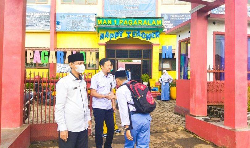 Kepala MAN 1 Pagar Alam Agus Sutiono, S.Pd di dampingi Wakamad dan Guru menyambut siswa siswi untuk Kegiatan Belajar Hendra 11/02/2022 25 Views 8 Likes
