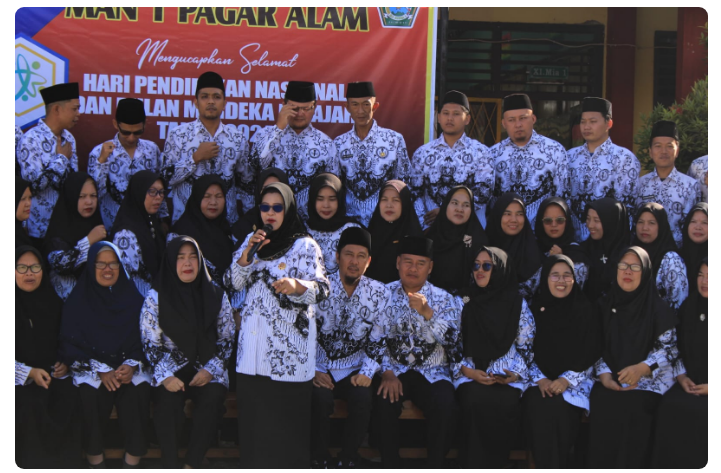 Kepala MAN 1 Pagar Alam,Hj Neliana,S,Ag MM Pada Peringatan Hari Pendidikan Nasional (Hardiknas) 2024 menegaskan Lanjutkan Merdeka Belajar.Kamis,(2/05)