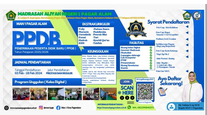 Penerimaan Peserta Didik Baru (PPDB) MAN 1 PAGAR ALAM Tahun Pelajaran 2025/2026 Hendra 12/12/2024 45 Views 12 Likes