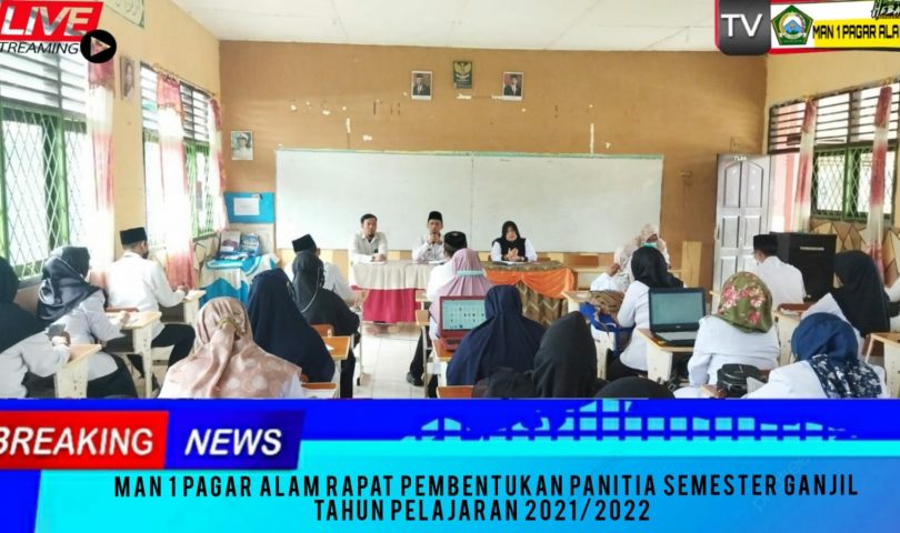 MAN 1 Pagar Alam menggelar rapat pembentukan panitia Penilaian Akhir Semester Ganjil Tahun Pelajaran 2021/2022. kegiatan rapat ini di pimpin langsung Kepala MAN 1 Pagar Alam Agus Sutiono di dampingi Kaur TU Rini Andriani dan Reni Indarti, selaku Wakakurikulum dan evaluasi MAN 1 Pagaralam yang dihadiri oleh seluruh tenaga pendidik dan kependidikan MAN 1 Pagaralam. Senin (15/11)
