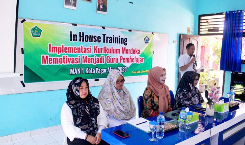 MAN 1 Pagar Alam mengadakan acara In House Training Implementasi Kurikulum Merdeka yang di ikuti oleh semua Guru ASN dan Non ASN Madrasah Aliyah Negeri 1 Pagar Alam bertempat di ruang kelas Madrasah, Senin (26/6)