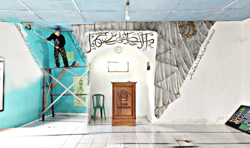 MAN 1 Pagar Alam perbarui warna cat mushola di madrasah yang warna nya mulai pudar dan luntur dan mengganti warna nya di bagian dalam dengan warna putih, dan bagian luar warna hijau, Minggu (12/09)