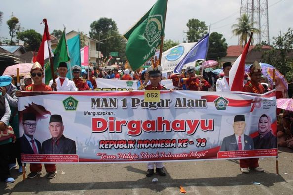 Penampilan teatrikal yang memukau penonton dan dewan juri pada karnaval yang diselenggarakan pemerintah Kota Pagar Alam dalam rangka HUT Ke-78 RI, menempatkan MAN 1 Pagar Alam berhasil menyabet juara harapan dua, Kamis (24/08)