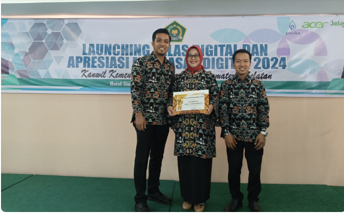 Kepala MAN 1 Pagar Alam,Hj Neliana,S.Ag MM menerima apresiasi terbaik 1, Madrasah Digital 3.0 dalam kegiatan Launching kelas Digital dan Apresiasi Madrasah Digital di lingkungan Kanwil Kemenag Sumsel Tahun 2024 bertempat di Hotel Peninsula Palembang.Kamis,(13/06)