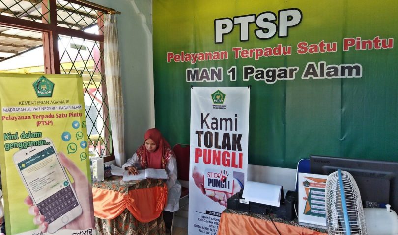 Pelayanan Terpadu satu Pintu (PTSP) Madrasah Aliyah Negeri 1 Pagar Alam komitmen tolak pungli dan gratifikasi apapun bentuknya (17/11).