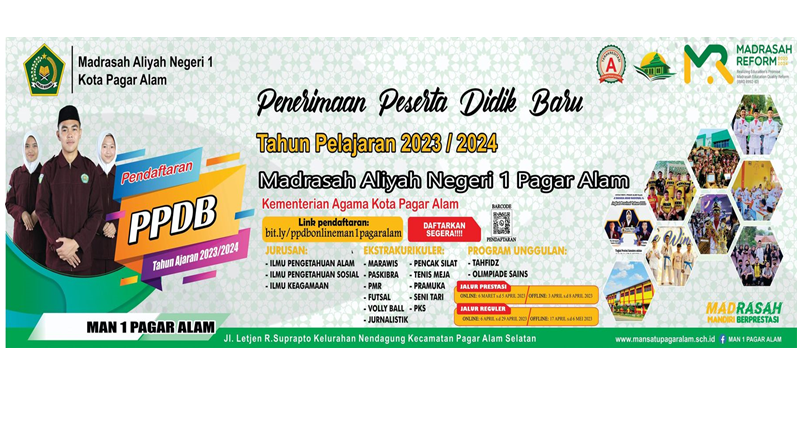 Penerimaan Peserta Didik Baru MAN 1 Pagar Alam Tahun Pelajaran 2023/2024 Hendra 10/04/2023 32 Views 8 Likes