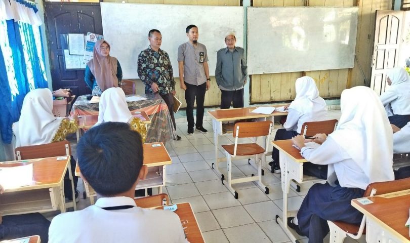 Waka Kesiswaan Bahusin dan didampingi Waka Humas Defit Roly mengajak langsung pengawas madrasah Yahadi untuk melihat langsung kondisi siswa/siswi mengerjakan soal Tes PPDB dan menghimbau agar siswa/siswi tetap semangat dan serius menjawab soal. (HW/DR)