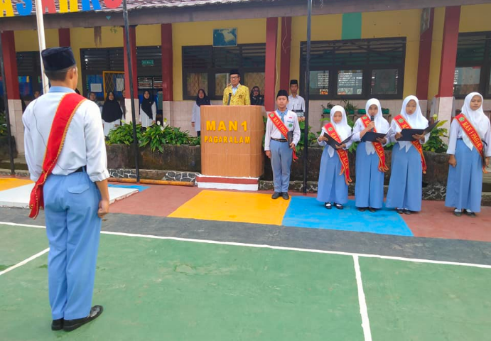 Pengawas Madrasah Kantor kementerian Agama Kota Pagar Alam Drs Yahadi bertindak selaku pembina pada pelaksanaan upacara bendera diikuti peserta didik, pendidik dan tenaga kependidikan di Lapangan utama MAN 1 Pagar Alam.Senin,(29/07)