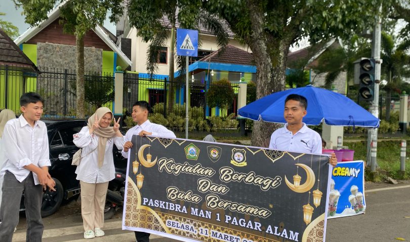 Ramadhan berbagi Paskibra MAN 1 Pagar Alam  membagikan takjil kepada Masyarakat pengguna jalan baik pengendara maupun pejalan kaki yang sedang melintas di lokasi sekitar Madrasah,karena lokasi MAN 1 Pagar Alam   terletak dipinggir jalan lintas.Selasa,(11/03)