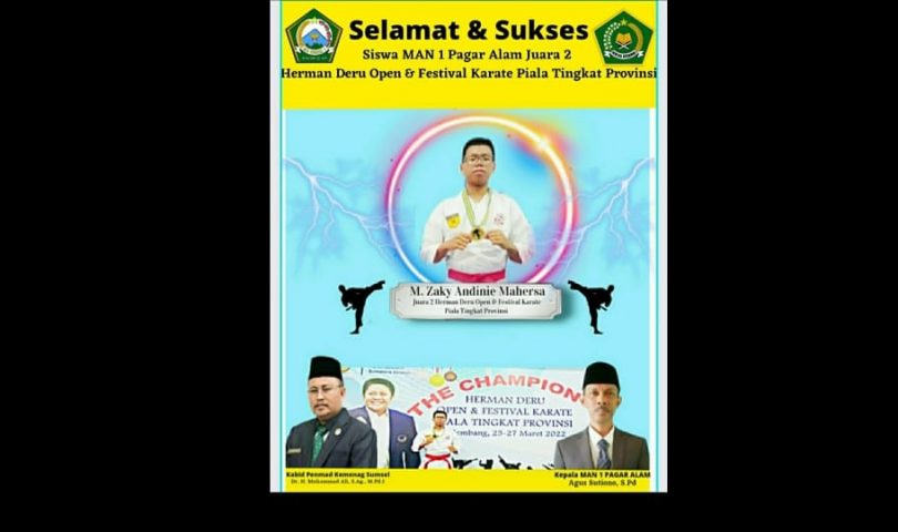 Kepala MAN 1 Pagar Alam Agus Sutiono menyambut baik prestasi yang di dapatkan siswa MAN 1 Pagar Alam M. Zaky Andinie Mahersa, juara 2 Herman Deru Open & Festival Karate Piala Tingkat Provinsi.